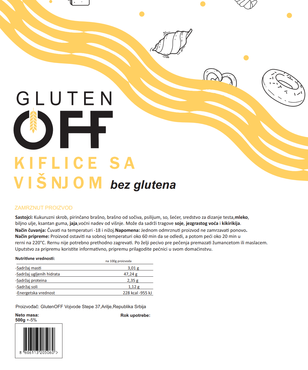 Kiflice sa višnjom Kukuruzni skrob, pirinčano brašno, brašno od sočiva, psilijum, so, šećer,