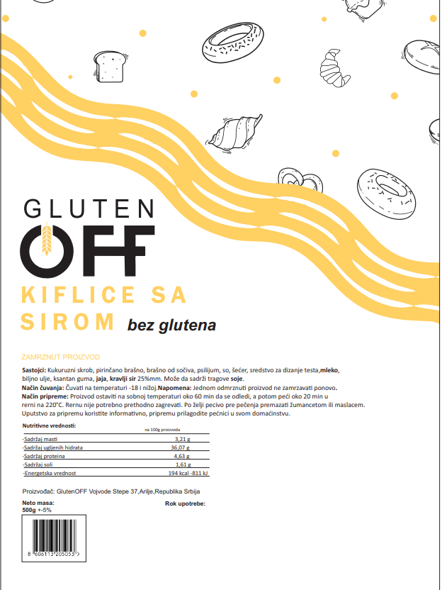 Kiflice sa sirom Kukuruzni skrob, pirinčano brašno, brašno od sočiva, psilijum, so, šećer,